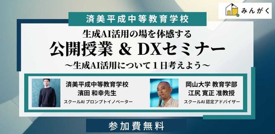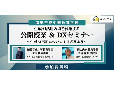 株式会社みんがく(本社:東京都新宿区、代表取締役:佐藤雄太、以下みんがく)と済美平成中等教育学校は、2025年7月30日(水)に愛媛県松山市で「公開授業&DXセミナー~生成AI活用の場を体感する~」を開催します。