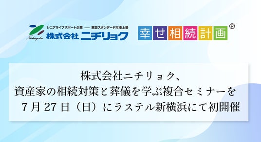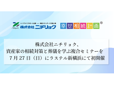 お墓・葬儀・終活などシルバーファミリーコンサルティングサービスを提供する株式会社ニチリョク(本社:東京都中央区/代表取締役社長:渡邊将志 証券コード:7578 以下「当社」)は、2025年7月27日(日)にラステル新横浜にて、一般社団法人全国幸せ相続計画ネットワークと合同で、相続対策と葬儀に関するセミナーを初開催いたします。