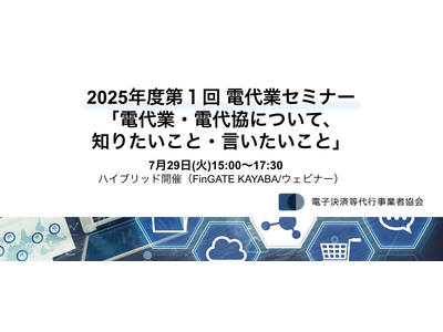 一般社団法人電子決済等代行事業者協会は7月29日(火)に2025年度 第1回 電代業セミナー「電代業・電代協について、知りたいこと・言いたいこと」を開催します。