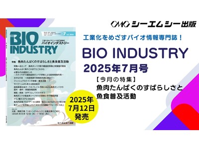株式会社シーエムシー出版(本社:東京都千代田区、代表:金森洋平)は、雑誌『月刊BIOINDUSTRY 2025年7月号』を7月12日に発売します。紙媒体の「雑誌版」は税込6,050円(本体価格5,500円+税)で、当社ECサイト及び全国の書店でご注文を受け付けております。また同時に「電子版」も、電子書籍販売サイト「CMCeBook」にて税込5,500円(本体価格5,000円+税)で販売します。