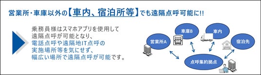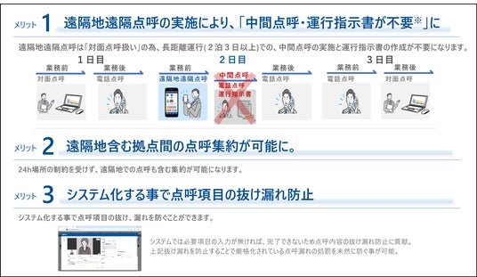 遠隔地遠隔点呼(スマホアプリでの遠隔点呼)機能が
