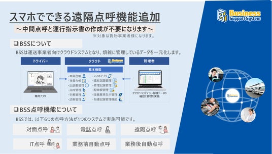 BusinessSupportSystemにてスマホでできる遠隔点呼(遠隔地遠隔点呼)機能をリリース!!