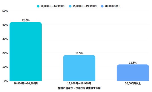 施設選びで最も重視するポイント別に予算を分析したところ、以下の傾向が判明しました。