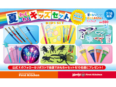 ウェンディーズ・ジャパン株式会社及び、ファーストキッチン株式会社 (所在地:東京都新宿区、代表取締役:紫関修) は、7月18日(金)から、ウェンディーズ・ ファーストキッチンとファーストキッチンの対象店舗で、スペシャルキッズセットを販売します。今夏は、見た目にもわくわくできる“夏にぴったりなおもちゃ”を厳選!夏のわくわくはウェンディーズとファーストキッチンにお任せ!数に限りがありますので、お早めにご来店ください。また、7月11日(金)~7月25日(金)の期間中、ファーストキッチンの公式X(旧Twitter)アカウント(@FK_PR)をフォローし、対象ポストをリポストいただくと抽選で10名様に、スペシャルおもちゃセットをプレゼントいたします。ぜひご参加ください!