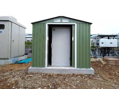 ■今回設置した蓄電池(塩害対策の為、小屋に収まっています)