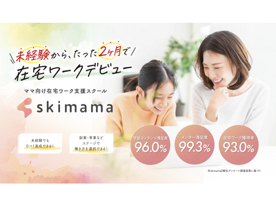 ママ向け在宅ワーク支援スクール「skimama(スキママ https://skimama.jp/)」は、在宅就労に必要なスキル研修から、実際の仕事獲得までを一気通貫で支援するリスキリングプログラムです。