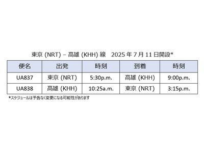 ユナイテッド航空アジア・太平洋地区営業担当支社長の桐山謙一は、次のように述べています。「東京と高雄を結ぶ新たな路線を開設できることを大変嬉しく思います。この新路線により、お客様にさらなる旅の選択肢をご提供できるだけでなく、両都市間の観光交流の活性化にも貢献できると考えています。日本のお客様には高雄への直行便を、また高雄からのお客様には、ユナイテッド航空の米国ネットワークへのスムーズなアクセスを、ワンストップでご利用いただけるようになります。」