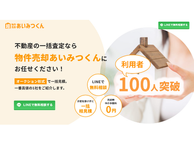 不動産売却支援サービス「物件売却あいみつくん」累計利用者数100人を突破!