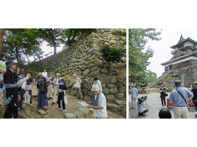 現存十二天守のひとつ、重要文化財の「丸岡城」天守の国宝化を目指す福井県坂井市の教育委員会は7月8日に、城山整備基本計画策定に向け、課題の把握や現状を確認する現場視察(エクスカーション)を行った。お天守が鎮座する城山は、明治、大正時代の城の荒廃のあと、昭和初期には次第に公園化が進み、桜などが植えられ大きく景色が変わり、石垣も法面も何度か崩落に遭っている箇所があるなど築造当時の江戸時代の面影とは大きく姿を変えている。どこまで往時の城山に戻すのかなどの基本方針が計画案に盛り込まれる予定で、この日参加した市民20人や専門家らは、城を見上げながら「国宝化に向け、城としての丸岡城をどう見せていくのか、より良い姿を考えていきたい」と今後の整備に期待を込めていた。市教委は、城山整備基本計画は2026年度末の策定を目指し、翌27年度から具体的な事業に着手していく。