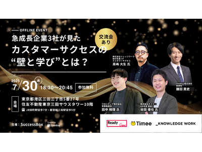 OneBox株式会社(本社:東京都渋谷区、代表取締役社長:伊藤直樹、以下「OneBox」)は、2025年7月30日(水)、「急成長する3社が見た、カスタマーサクセスの壁と学びとは?」と題したオフライン限定セミナーを東京都内で開催します。