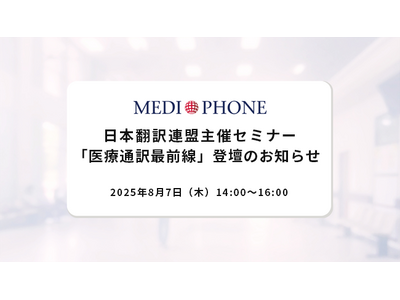 医療機関向け遠隔医療通訳の提供や、企業の健康経営支援を行うメディフォン株式会社(東京都港区、代表取締役:澤田真弓、以下「メディフォン」)は、代表取締役CEOの澤田真弓が2025年8月7日(木)に開催される、一般社団法人日本翻訳連盟(JTF)主催のオンラインセミナーに登壇することをお知らせいたします。