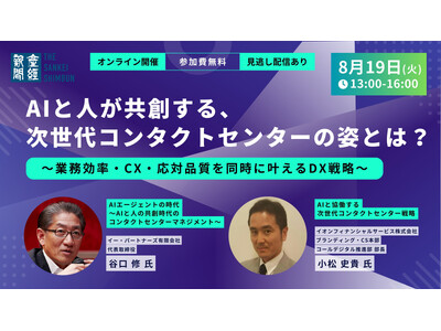 産経新聞社(東京都千代田区、社長・近藤哲司)は、セミナー「AIと人が共創する、次世代コンタクトセンターの姿とは? ~業務効率・CX・応対品質を同時に叶えるDX戦略~」を、8月19日(火)13時からオンラインで開催。参加者を募集します。