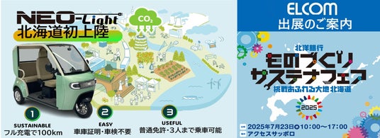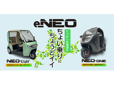 株式会社エルコム(本社:北海道札幌市、代表取締役:相馬 嵩央、以下「当社」)は、株式会社ダイゾー(本社;大阪府大阪市)の小型eモビリティ「e-NEO」の正規販売代理店として、北海道と全国の離島地域での販売を正式に開始いたします。「e-NEO」は100V電源でも充電ができる3人乗り電動バイク。北海道での取り扱いは今回が初めてとなり、都市部から観光地、郊外エリアまで、地域の多様な移動ニーズに応える新たな選択肢として、小さなコミュニティ向けインフラを支える移動手段として期待されています。