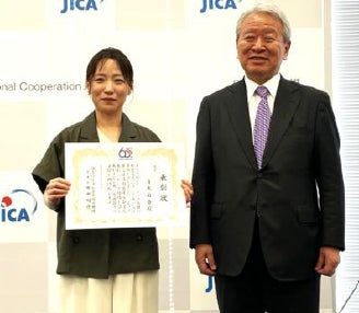 大賞を受賞した青木氏(左)と田中JICA理事長(右)