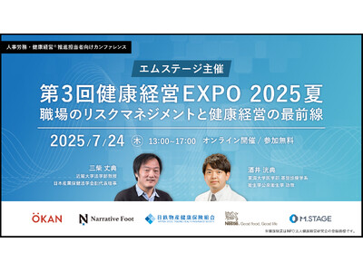 株式会社エムステージ(本社:東京都品川区、代表取締役:杉田雄二)産業保健事業部は、7月24日(木) 13時より、2025年度の健康経営の推進を語る『第3回 健康経営EXPO 2025夏』をオンラインにて開催いたします。