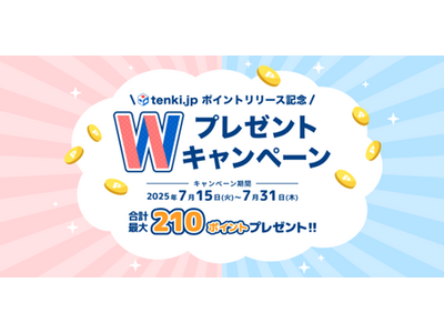https://tenki.jp )」において、7月15日(火)より「tenki.jp ポイントリリース記念!Wプレゼントキャンペーン」を開始することをお知らせいたします。