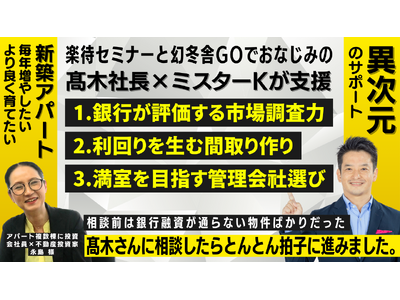 ■現役のサラリーマン不動産投資家ミスターKから会社員でも銀行融資を受けて新築アパート一棟投資を学べるセミナー