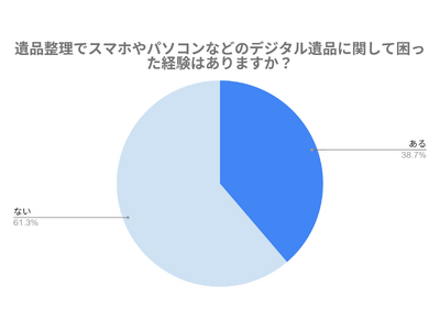 デジタル遺品の整理で困った経験があるか尋ねたところ、「ある」と回答した人は約39%、「ない」と回答した人は約61%という結果になりました。