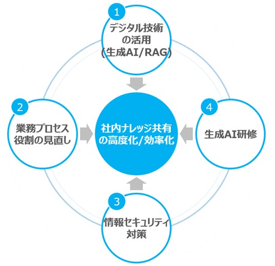 本取り組みでは、単にシステムを導入するだけでなく、組織全体で安全かつ効果的に生成AIを活用するために、以下の施策を実施しました。