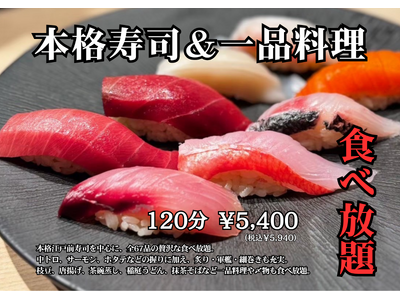 120分こだわり寿司の食べ放題コースが5,400円(税込5,940円)を実施いたします!