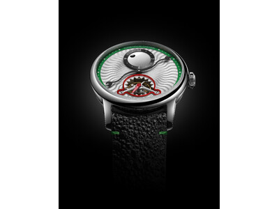 ルイ・エラールは、再び、時計界の巧匠でAHCI(Academie Horlogere des Createurs Independants - 通称アカデミー)のメンバーであるコンスタンチン・チャイキンとコラボレーション第3弾のレギュレーターモデルを発売したばかりですが、その興奮が冷めやらぬまま、まさにモンスターの舌の根が乾かぬうちにトゥールビヨンモデルを発表しました。「Wrist Monster(腕上の怪物)」- スラブの伝説に登場するノコギリのような口を持つ1つ目の怪物「Likho(リホ)」が、グリーンの表情と、噛み付くようなトゥールビヨンとして生き続けます。このコラボレーションは世界限定版として78本のみ用意されます。