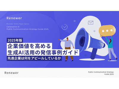 Renewerが発行した『2025年版 企業価値を高める生成AI活用の発信事例ガイド』は、各企業が生成AIの活用や戦略を効果的に発信し企業価値を向上させることで、ひいては生成AI市場の拡大に貢献することを目的に作成・公開されたものです。