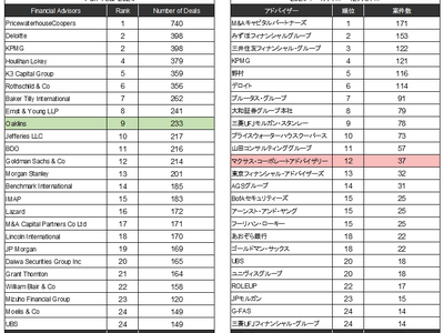中規模(ミドルサイズ)のM&A案件を総合的にサポートするM&Aアドバイザリーファーム。2013年に設立し、M&Aアドバイザリー(FA業務)、事業承継、事業再生、企業価値評価(バリュエーション)、財務デューデリジェンスに関する総合的な助言業務を提供しています。創業以来、累計300件を超えるM&A案件に関与し、LSEGのM&A件数ランキングでは11年連続でランクインしています。海外ネットワークも活用し、グローバルM&Aにも対応。