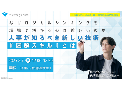 図解思考を用いた人材育成サービスを提供する株式会社Metagram(本社:東京都渋谷区、代表取締役:高野雄一)は、2025年5月14日~22日に開催された日本最大級の人事カンファレンス「日本の人事部 HRカンファレンス2025-春-」(後援:厚生労働省)にて、当社代表・高野雄一が登壇した特別講演『なぜロジカルシンキングを現場で活かすのは難しいのか 。人事が知るべき新しい技術、「図解スキル」とは』が、満足度上位講演(全176講演中6講演のみ選出)に選ばれました。