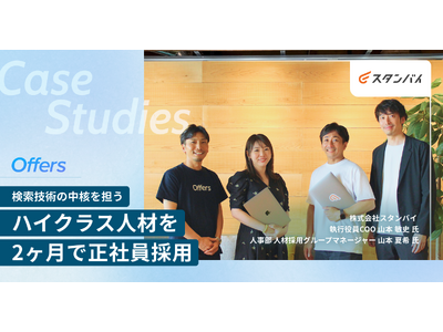 ハイクラスエンジニア採用プラットフォーム「Offers(オファーズ)」を運営する株式会社overflow(本社:東京都港区、代表取締役:鈴木裕斗、以下 overflow)は、あらゆる雇用形態の求人情報を提供する求人検索エンジン「スタンバイ」を開発・運営する株式会社スタンバイ(本社:東京都品川区、代表取締役:南 壮一郎 氏)が、Offersの「リテーナープラン」を活用してハイクラス人材の正社員採用に成功したことをお知らせします。合わせて、スタンバイ社がOffers導入後、どのように課題を解決し、理想的な採用を実現したのか、事例インタビューを公開いたしました。