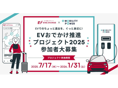 ミライズエネチェンジ株式会社(本社:東京都中央区、代表取締役社長:柘野善隆、以下「ミライズエネチェンジ」)と株式会社e-Mobility Power(本社:東京都港区、代表取締役社長:幸加木 英晃、以下「e-Mobility Power」)は共同で、EVユーザーの中長距離移動における行動変容をテーマにした実証実験「EVおでかけ推進プロジェクト2025」(以下「本プロジェクト」)を、2025年7月17日(木)より開始いたします。あわせて、本日2025年7月16日(水)より、参加者の募集を開始いたしました。