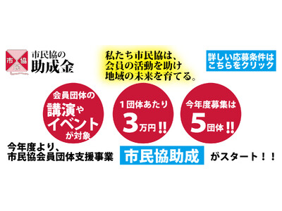 介護系事業者900団体の会員を有し、身近な地域での助け合い・支え合い、優しい福祉のある地域社会づくりを推進している認定特定非営利活動法人市民福祉団体全国協議会(本社:東京都新宿区、代表理事:鷲尾公子・とよしま亮介、略称市民協)は、会員団体を対象に各団体で開催する講演・イベントへの助成を行う【市民協助成】をスタートします。