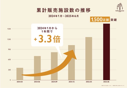 卸売事業の本格展開を開始した2024年の1年間で、販売施設数は3.3倍にまで増加し累計1,000店舗を突破。さらに2025年に入ってからは半年間で新規販売施設が1.5倍となり、この度1,500店舗を突破いたしました。