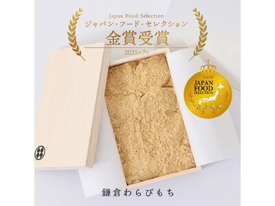 2025年7月15日付で甘味処鎌倉の人気商品「鎌倉わらびもち」が、食品専門評価制度《ジャパンフードセレクション》にて【金賞】を受賞しました。