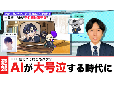 そして注目は、MCとして実況を務める“原田さんAI”。元テレビ東京アナウンサー・原田修佑さんの声や語り口、性格をもとに生成されたAIキャラクターで、コアラ姿のタレントAIとして登場し、“号泣演技選手権”の様子を実況します。