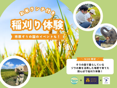 ゾウの堆肥で育てたお米の稲刈り体験」を9月20日(土)に開催します。