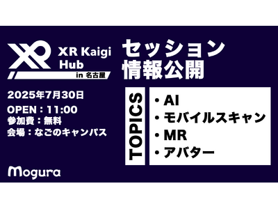 株式会社Moguraは、国内最大級のXRカンファレンス「XR Kaigi」の姉妹イベントとして7月30日(水)に開催する「XR Kaigi Hub in 名古屋」のセッション情報を発表いたしました。