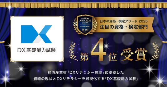 株式会社日本能率協会マネジメントセンター(代表取締役社長:張 士洛、東京都中央区、以下JMAM[ジェイマム])が実施する「DX基礎能力試験」は、株式会社シー・ビー・ティ・ソリューションズが主催する【日本の資格・検定アワード 2025】の注目の資格・検定部門にて第4位を受賞しました。