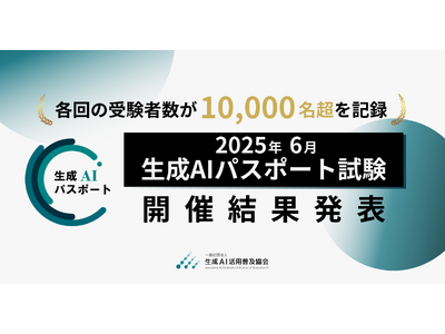 生成AIを社会に実装し、産業の再構築を目指す一般社団法人生成AI活用普及協会(理事長:井畑 敏、所在地:東京都港区)は、2025年6月1日(日)~6月30日(月)に開催した「2025年6月 生成AIパスポート試験」の開催結果を発表いたします。今回の試験では、過去に開催した試験と比べて最多の受験者数となる、10,759名が受験し、8,300名が合格する結果になりました。前回比で約1.6倍の方々に受験いただいたことを受け、生成AIを安全に活用するためのリテラシーを有する企業・人材の可視化に対する需要の高まりを感じるとともに、さらなる普及に向けた取り組みを推進してまいります。