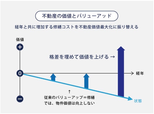 不動産は、経年劣化により、市場価値や利用価値も減少していきます。ビルオーナーはその価値維持のため、内外装や設備更新に多額の費用をかけることが常識となっていますが、このような修繕は、あくまで価値の引き戻しに過ぎず、増収にはつながらないため、投資回収もままなりません。