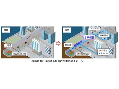 このたび、東京都港湾局、NTTアノードエナジー株式会社、NTTアドバンステクノロジ株式会社は、臨海副都心の共同溝を活用し、水素を複数の需要拠点まで無付臭※2で供給する水素ネットワークの実現をめざし、水素漏えい検知手法等の研究開発を行うこととなりました。