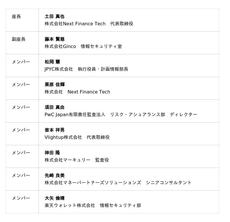 本WGでは、暗号資産交換業者以外のweb3関連サービス事業者においても、そのサービスに関連した考慮すべきセキュリティの高度化の必要性が今後ますます高まってくることが想定され、各サービスに応じたセキュリティの情報を整理することで、事業検討の一助となるとともに、一般ユーザーにとってもセキュリティ上、有益となる情報の整理も合わせて取り組む予定です。