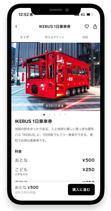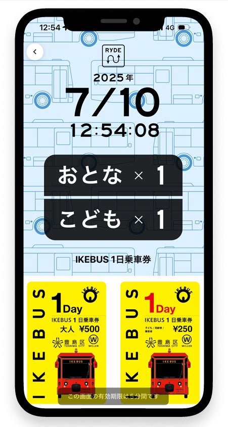 「IKEBUS 1日乗車券」は、池袋のまちなかを周遊する『IKEBUS』が1日乗り放題となる便利な企画乗車券です。地域住民の方はもちろん、観光やおでかけで訪れる利用者に、より便利でスマートな移動を提供するため、『IKEBUS』の「1日乗車券デジタルチケット」を「RYDE PASS」アプリで発売します。いつでもどこでもスマホで簡単に購入いただけるため、利用者の利便性が向上します。