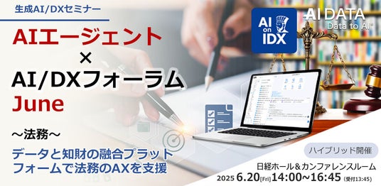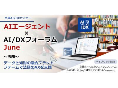 企業データとAIの利活用カンパニー、AIデータ株式会社 (本社:東京都港区、代表取締役社長 佐々木 隆仁、 以下 AI データ社)は、6月20日に企業内に溢れるデータの宝庫を戦略的に変えるデータと知財の融合プラットフォームAIネイティブ『AI孔明』を核に、様々な最先端のAIやDX活用ソリューションを提供している企業とコラボレーションする「Aエージェント×AI/DXフォーラム 法務」の開催レポートを公開いたしました。