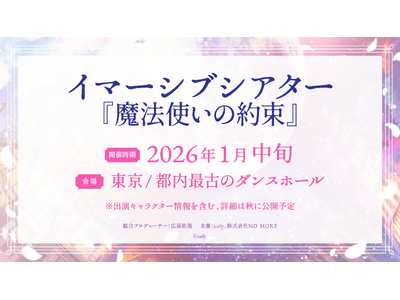体験型没入エンターテイメントやイマーシブコンテンツを提供する株式会社NO MORE(本社:東京都渋谷区、代表取締役:佐田晋一郎)は、株式会社coly(所在地:東京都港区、代表取締役社長:中島杏奈)と共同で、人気育成ゲーム『魔法使いの約束』を原作とした「イマーシブシアター『魔法使いの約束』」を2026年1月中旬に上演することを発表いたします。