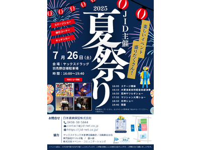 日本賃貸保証株式会社(本社:木更津市、代表取締役:梅田真理子、以下「JID」)は、2025年5月に本社を木更津西口に移転いたしましたが、これまで本社を構えておりました木更津市羽鳥野にて、地域の皆さまへの感謝の気持ちを込めて夏祭りを開催する運びとなりました。