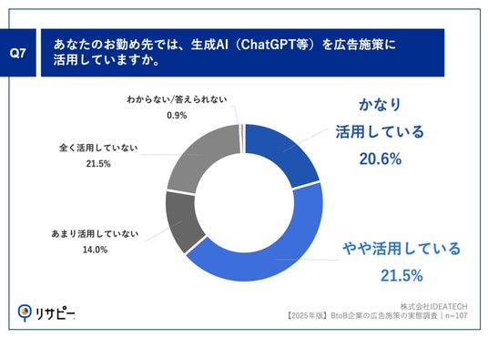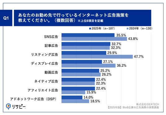 ワンストップでリサーチマーケティングを実現する「リサピー(R)」(https://ideatech.jp/service/research-pr )を運営する株式会社IDEATECH(本社:東京都港区、代表取締役社長:石川友夫)は、BtoB事業の広告担当者107名を対象に、【2025年版】BtoB広告施策の定点調査を実施しましたので、お知らせいたします。