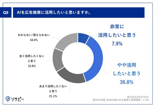 「Q9.AIを広告施策に活用したいと思いますか。」(n=38)と質問したところ、