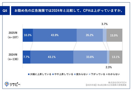 Q5.お勤め先の広告施策では2024年と比較して、CPAは上がっていますか。