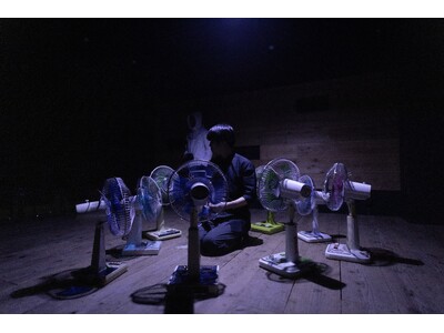メインパフォーマーの岡本晃樹は、抽象性の高いジャグリング道具(ボールやリング)と、日常物(扇風機・カメラ)を同じモードで扱います。その中で、「身体」そのものがモノと化す瞬間すら描かれます。現実と虚構、実体と映像が交錯し、「これはどこまでが何か?」を問い直す空間が出現します。