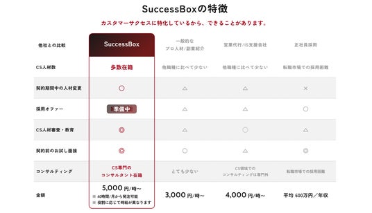 OneBox株式会社(本社:東京都渋谷区、代表取締役社長:伊藤直樹、以下「OneBox」)はこのほど、カスタマーサクセス(CS)領域に特化したBPOサービス「SuccessBox(サクセスボックス)」のサービスページをリニューアルしました。